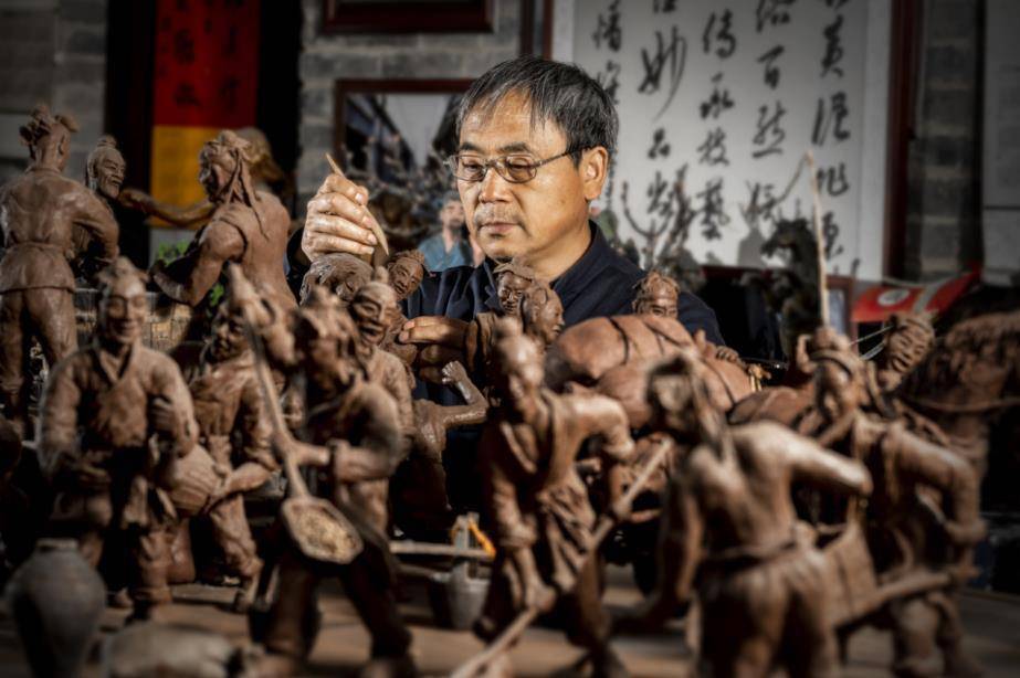 淮北泥塑省级非遗代表性传承人李建东正在制作泥塑。
